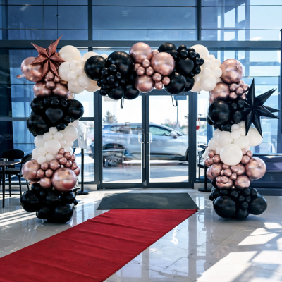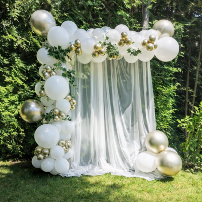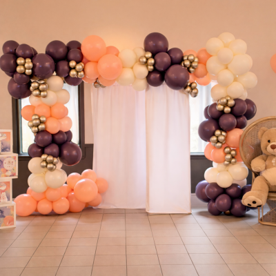 Nous offrons une variété de banderoles thématiques, bouquets hélium, arches de ballons et arches en “L”, incluant des options avec backdrop. Chaque décor est soigneusement assemblé pour créer un effet visuel fort et durable, idéal pour un coin photo ou une mise en scène marquante.